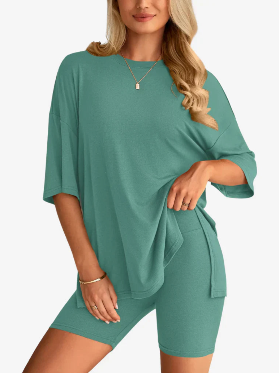 The relaxed-fit tee pairs perfectly with matching high-waist shorts featuring an elastic waistband for the ultimate easy fit. Lightweight yet durable, this set gives you that laid-back vibe without sacrificing polish.